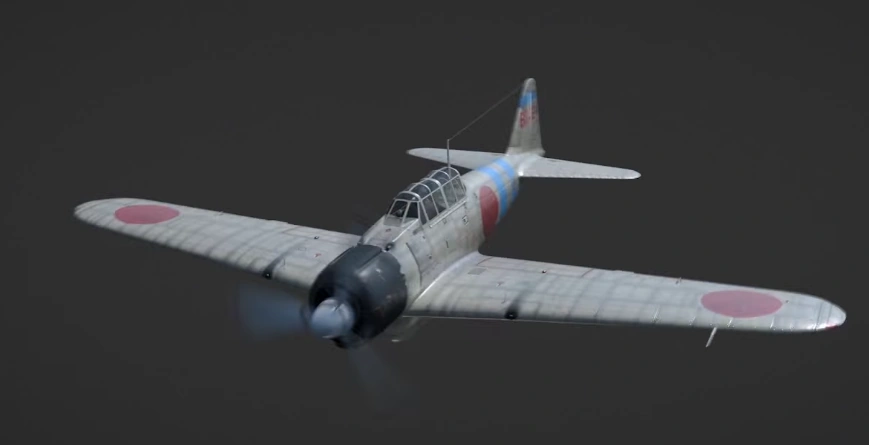 Seen briefly this is identical to the Mitsubishi A6M Zero. In the show it is blurred, the picture to the right of this text is recovered from a VFX breakdown. The blue stripes indicate that it is part of the Imperial Japanese Navy Air Service but due to its blurring it is likely that this was not meant to be seen in great detail although this does confirm propellor fighter planes still remain in use in the 60s. It may also indicate that the IJNAS continues to use Zero's although this is unlikely as the only carriers seen in the show carried Carrier-based jet aircraft.
