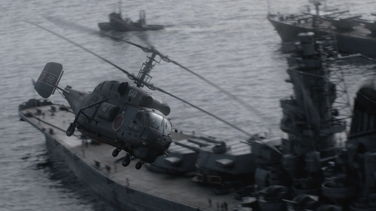 Coaxial rotor helicopters were used by the Imperial Japanese Navy and are seen briefly in a couple of shots. They are near-identical to the real life Kamov Ka-27.